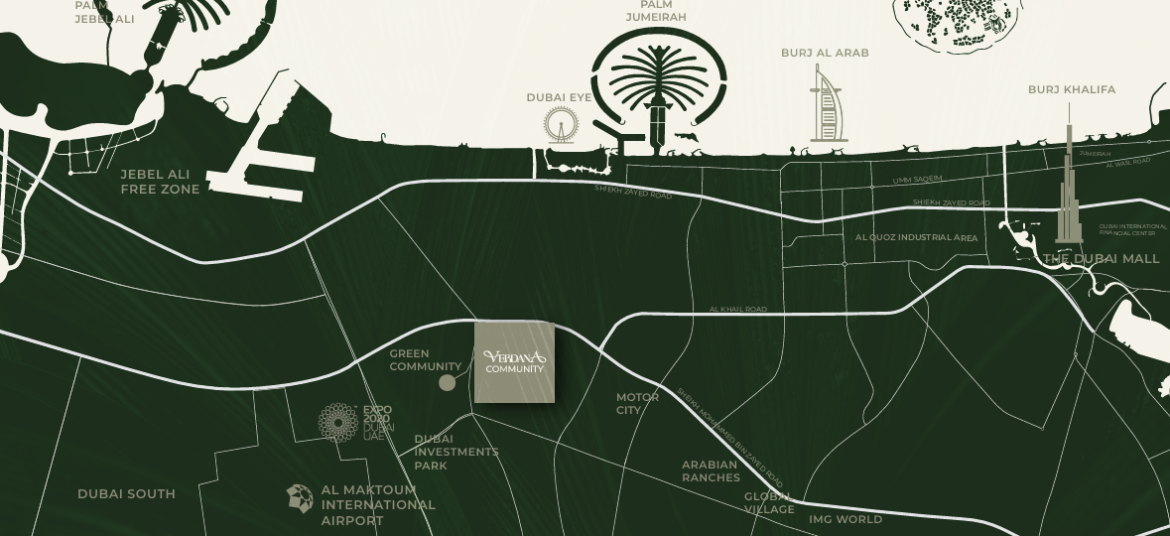 Dubai Investments Park (DIP) is a high-demand zone for both end-users and investors. With the expansion of Al Maktoum International Airport and the growth of Expo City, property values in Verdana are positioned for significant capital appreciation and high rental yields.