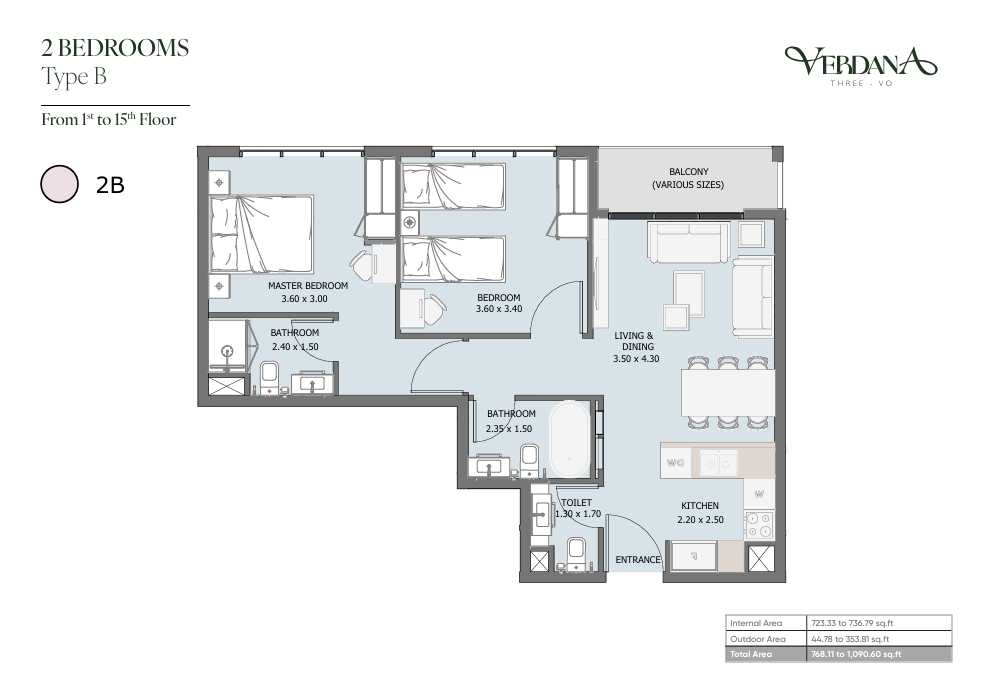 Modern Aesthetics: Sleek, contemporary architecture featuring floor-to-ceiling windows, spacious balconies, and premium finishes.
